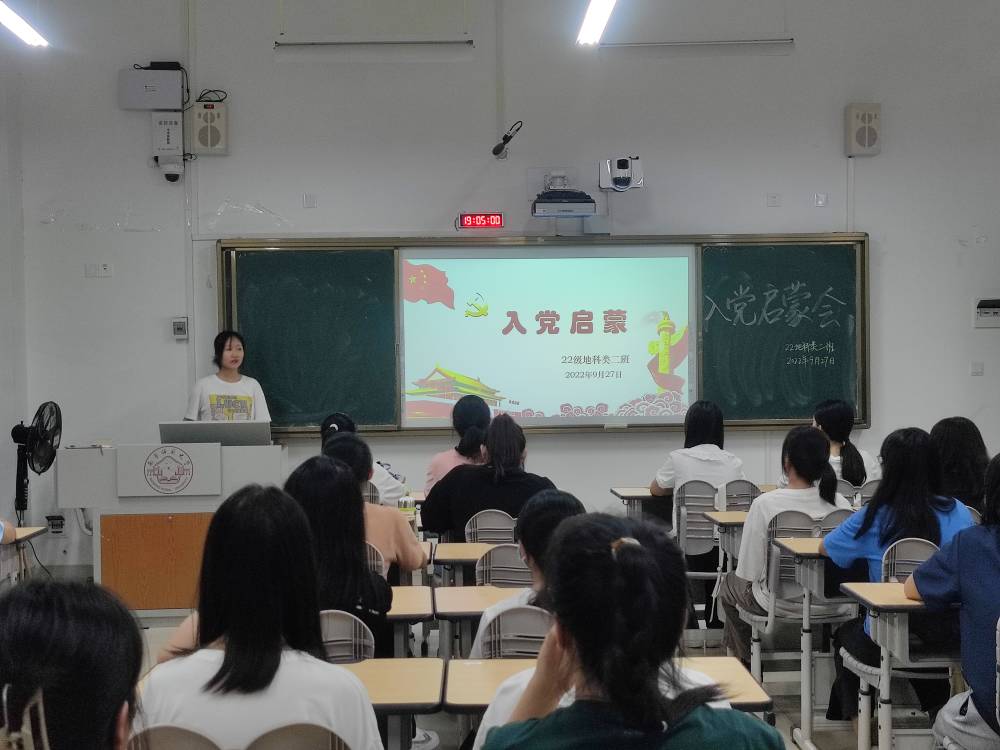 为注入新鲜血液,涌入新力量,我院2022级地理科学类二班于9月27日在武鸣校区一号教学楼106教室开展入党启蒙会议。本次会议主要开展入党启蒙工作,鼓励地科类二班团支部成员积极向党组织靠拢。会议由助班巫凯璇主持,团支部全体成员参加会议。