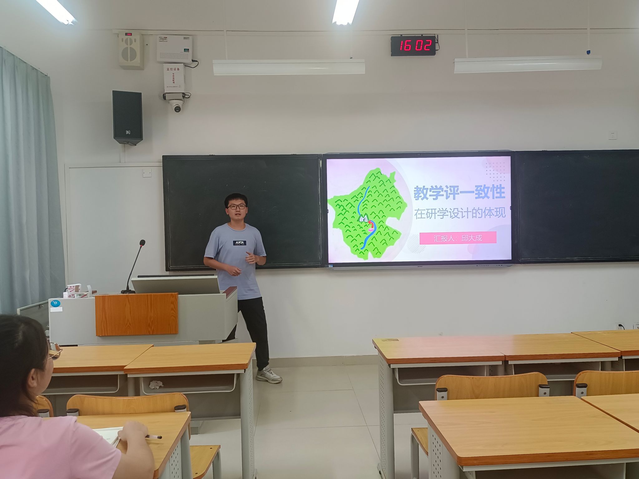 活动期间,21陶全体同学依据“大创”、“研学”以及各类比赛等经历各抒己见,从我眼中的地理实践力、如何落实地理实践力等方面浅谈自身对“地理实践力”的看法。邱大成同学通过百色罗妹莲花洞的实践经历和研学设计大赛中研学目标的制定,分享了“‘教学评一致性’要贯穿于课程‘目标、内容、实施、评价’的各个环节,教学理论要深入到课程设计的思想中,从而落实‘地理实践力’这一核心素养”的观点。莫晓莉同学则将旅游过程中参观到的橘子洲头、洞庭湖和象鼻山等与第一次试讲相联系,提醒同学们在教学设计中对案例要进行深度剖析,从而加强学生对真实情景的感知。徐椿林同学又结合大创与全国第三次土壤普查工作的经历,讲述理论与现实场景之间的差异,建议同学们作为未来地理教师要给渗透学生这一思想。整个活动有声有色地进行,21陶全体同学认真聆听,对所阐诉的想法与见解有一定的思考,收获颇丰。