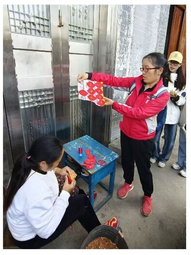 第二站我们来到了山水如画,人文古迹众多的旧州老街。一提到旧州,就能回忆起那挂满壮乡绣球的街道和小巷。壮乡绣球,是广西壮族特有的民俗,是壮族青年男女间的定情之物和吉祥之物。也正如所见,旧州被誉为中国的“绣球之乡”,其制作绣球的历史已有千年,是全国闻名的绣球之乡。据说这里的男女老少都会制作绣球,绣品图案精美,手工细腻,让人爱不释手。在老师们的带领下,同学们与当地壮族阿姐进行了进一步的交流,更加近距离的观察到了绣球的制作流程,我们了解到手工缝制一个绣球需要耗费整整两天的时间,而且越是小巧的绣球制作时间更长。绣球缝制的一针一线蕴含了壮族人民内敛又浓厚的情感,正成为传递爱情、亲情和友情的民族文化使者,也是广西走向世界的文化载体。