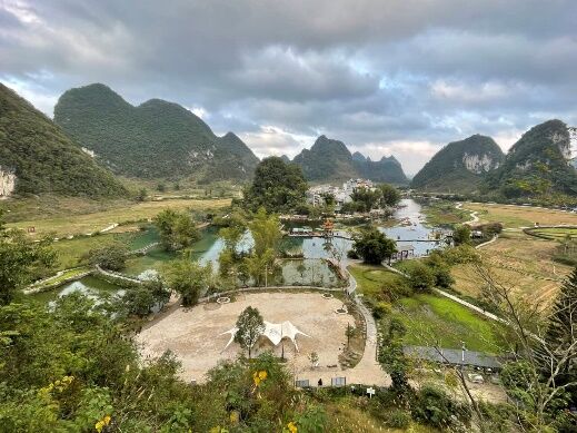 第一站我们来到了位于广西崇左市大新县堪圩乡的明仕田园,明仕田园是广西区级的研学教育实践基地之一,也是《花千骨》中的长留仙地,既有优美的自然风光,又有值得深入探索的文化底蕴,非常适合我们进行研学。明仕田园是典型的桂南喀斯特地貌,拥有花山岩画的古骆越千古遗迹和闲适婉约的田园风情。