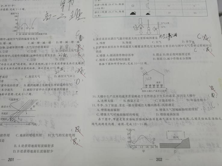 在改卷中我们发现学生对所学知识的掌握程度很低,在课堂上讲过的知识,在答卷时思维混乱,特别是对于大气受热过程中的两个作用对应的生活现象,以及大气热力环流的原理和过程。